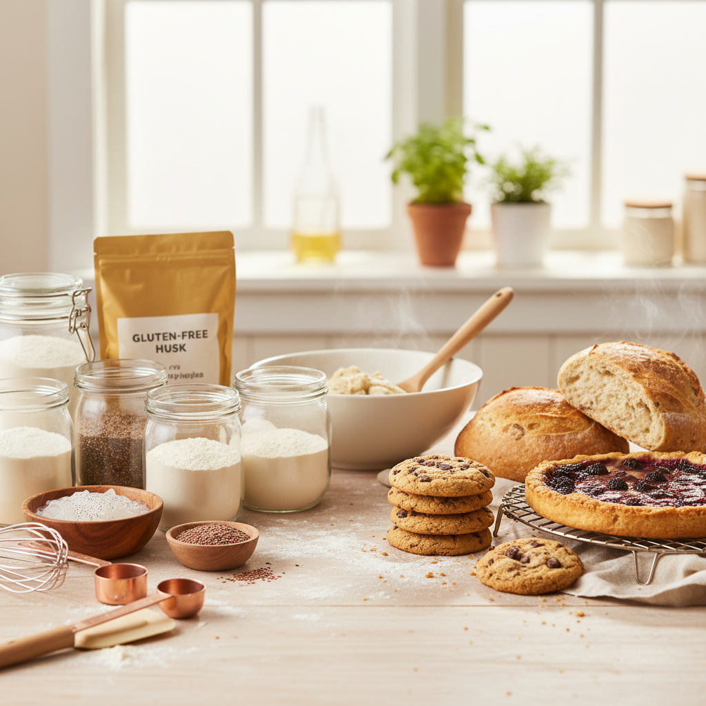 Psyllium husk powder mixed with water creates a gel that mimics gluten's gas-trapping network better than anything else available. It gives gluten-free bread dough the ability to stretch, hold carbon dioxide from yeast, and maintain structure during baking. For any yeasted bread — sandwich loaves, dinner rolls, pizza dough — psyllium husk gel is the gold standard. You will typically use about 1-2 tablespoons of psyllium husk powder per cup of flour blend, hydrated with water before adding to your dough.
