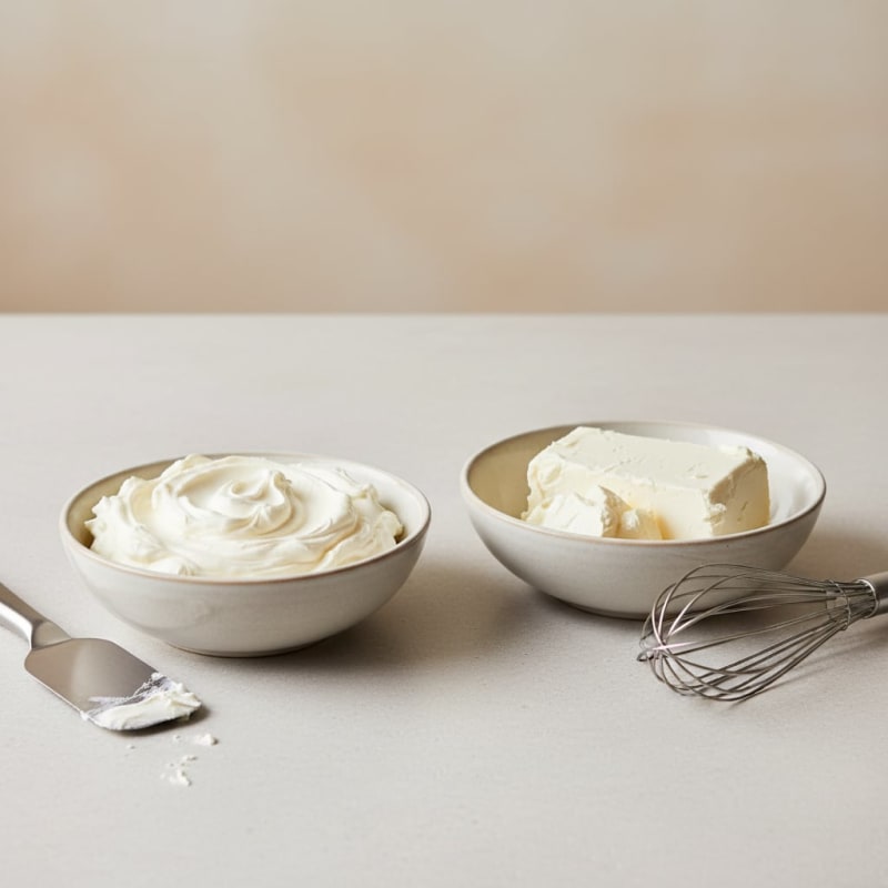 Mascarpone is milder, sweeter, and more buttery than cream cheese's distinctive tang. For cheesecakes where that tangy bite is essential, mascarpone will taste noticeably different — richer but less sharp. Adding a squeeze of lemon juice per cup of mascarpone helps approximate the tang.